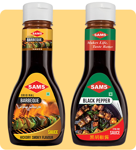 Sams Black Pepper Sauce 300g and Barbeque Sauce 325g Gourmet Sauces for Adding Taste and Flavour to Home Cooked Meals, Veg