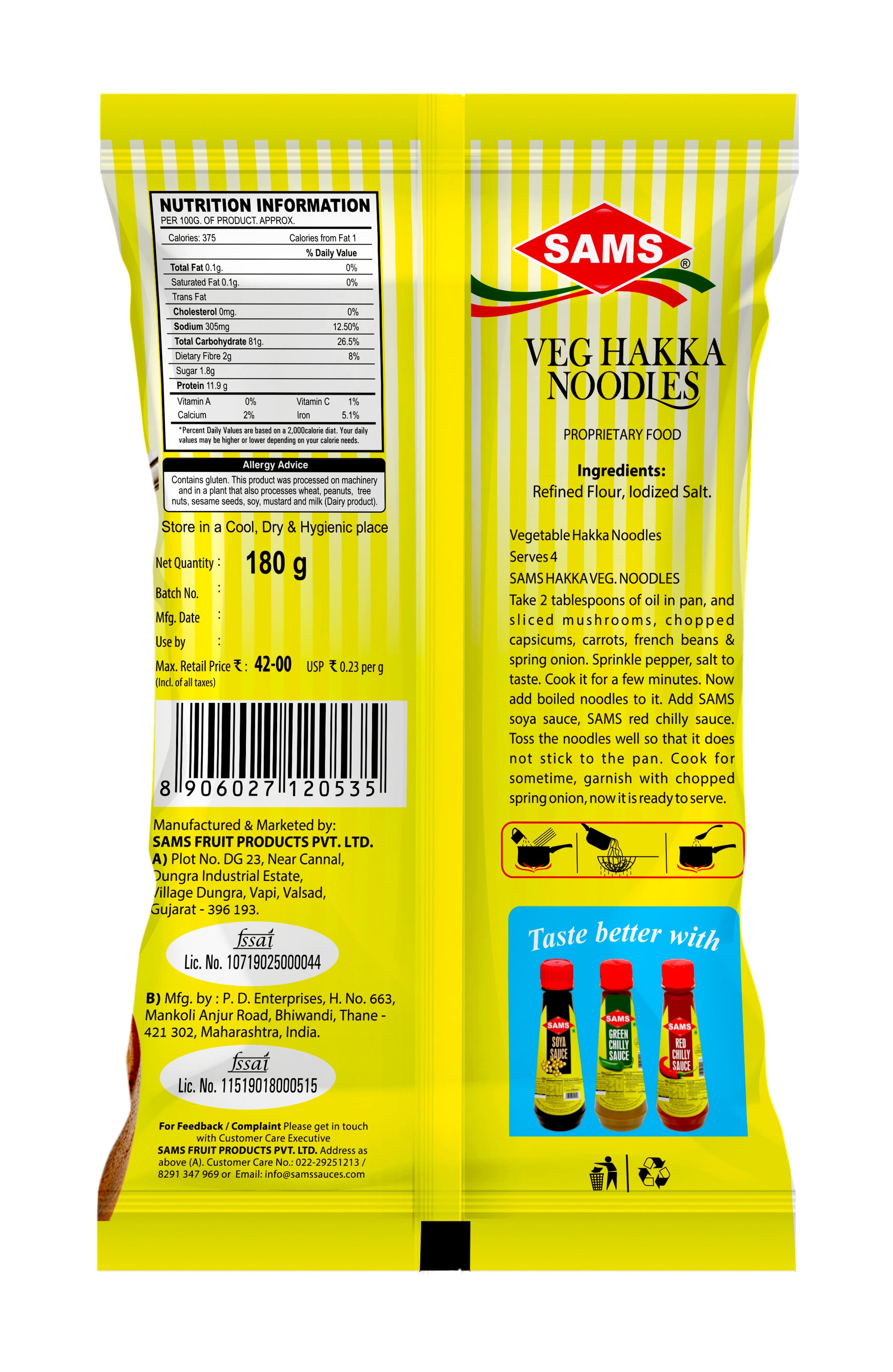 Sams Hakka Veg Noodles With Taste maker Black Single 180g pack of 7