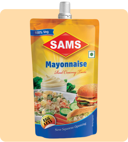 Sams Mayonnaise, 100% Vegetarian, Egg-Less, Squeeze Opening Pouch, Pack of 4