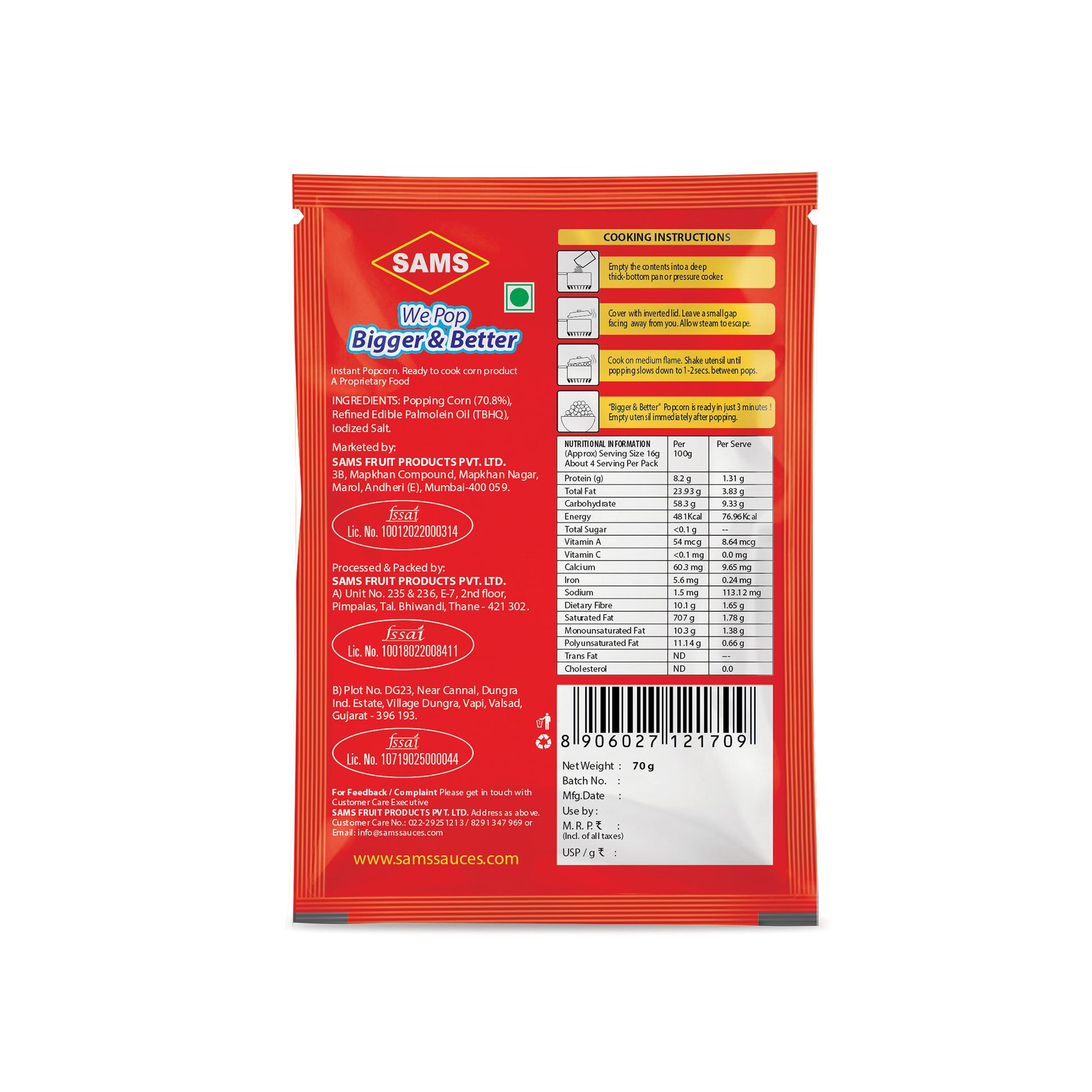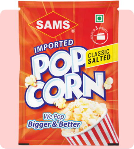 Sams Instant Popcorn, Classic Salted Flavour, 70g, Ready in 3 Minutes (Pack of 10)