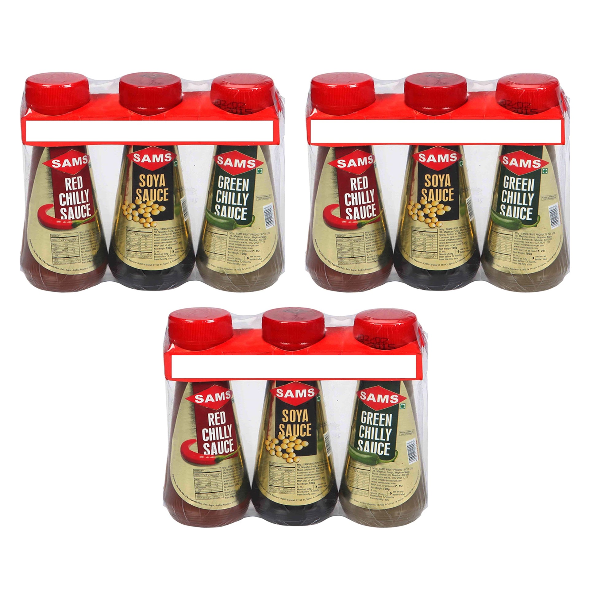 Sams Red Chilli Sauce 100gram, Green Chilli Sauce 100gram, Dark Soya Sauce 100gram, Combo Pack 3
