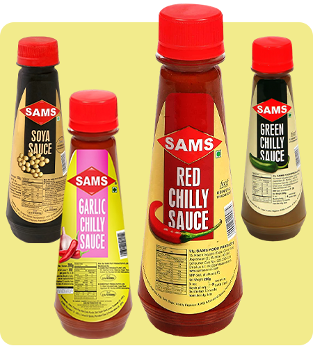 Sams 200gm Pack of Red Chilly Sauce, Green Chilly Sauce, Garlic Sauce, Soya Bean Sauce Combo Pack for Meal Sauces for Serving Cooking Chinese Asian Recipes