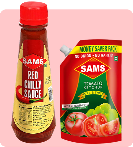 Sams Sams Tomato Ketchup 1kg and Red Chilly Sauce 200g Combo Pack, Pure & Thick
