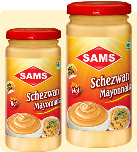 Sams Schezwan Mayonnaise Hot and Spicy, Egg-less, Pack of 2