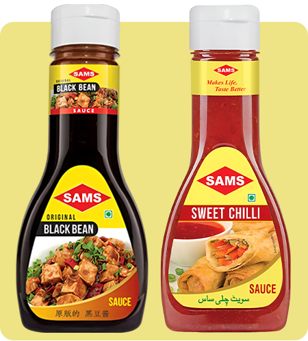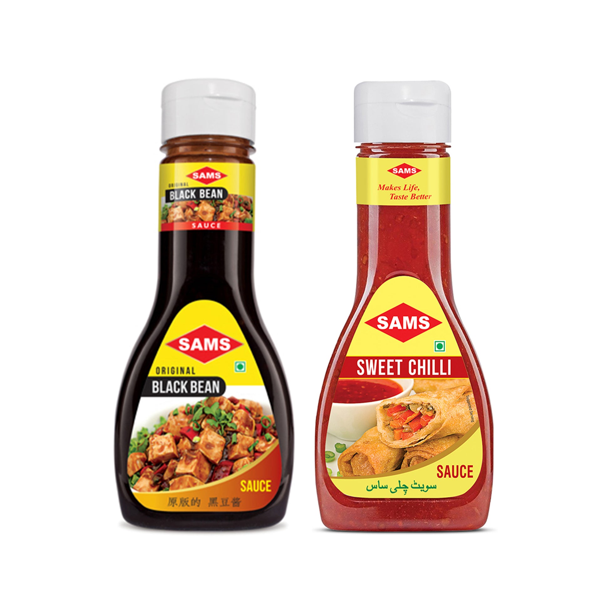 Sams Sweet Chilly Sauce 380g and Black Bean Sauce 330g Gourmet Sauces for Adding Taste and Flavour to Home Cooked Meals, Veg