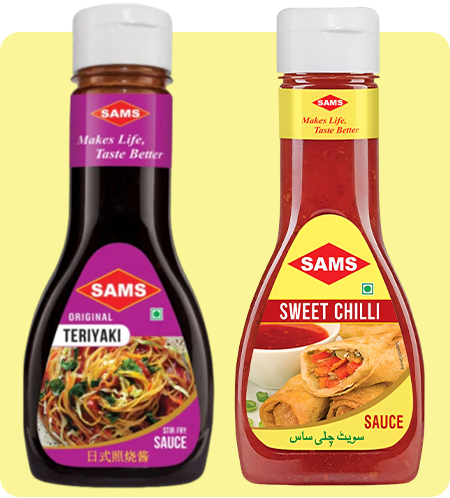 Sams Sweet Chilly Sauce 380g and Teriyaki Sauce 360g Gourmet Sauces for Adding Taste and Flavour to Home Cooked Meals, Veg
